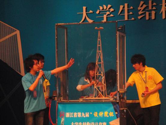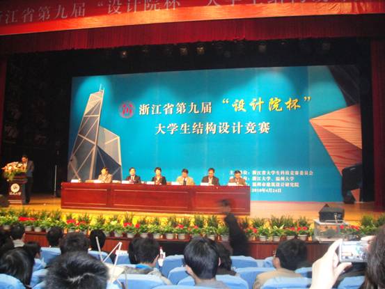 4月23至24日,浙江省第九届“设计院杯”大学生结构设计竞赛在温州大学举行,来自浙江大学等35所高校的74支参赛队参加,由我校组织选拔的5支参赛队经过激烈角逐最后荣获一等奖1项、二等奖2项、三等奖1项。