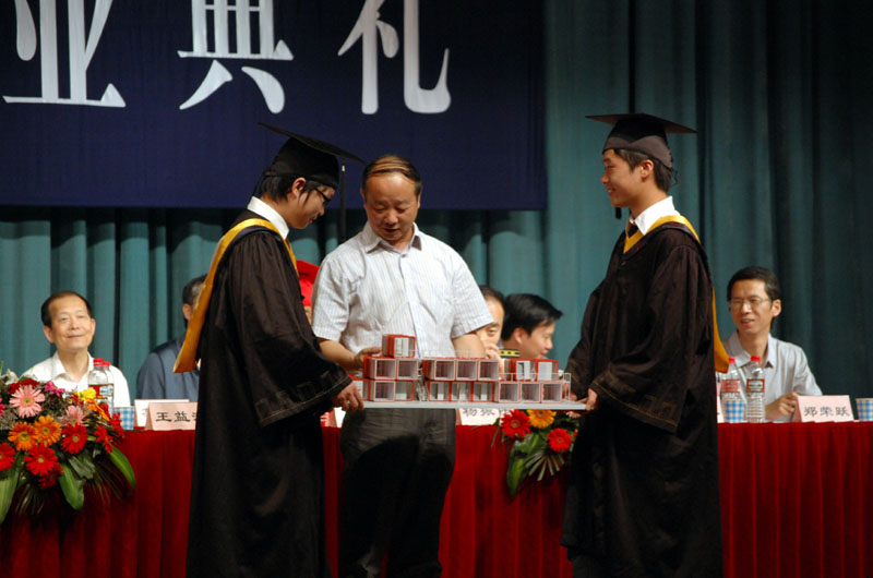 典礼上还公布了获得2009届省级、校级优秀毕业生荣誉的学生名单、获得“北仑房产”励志助学金的毕业生名单和获得2009年“建工人妻考研金牌班级”的班级名单,主席台就座领导为相关获奖集体和个人颁奖。毕业生代表曹茜茜、毕业国防生代表陈绍飞同学在典礼上作了发言,毕业班代表还向人妻赠送了纪念品,祝愿母校办学事业蒸蒸日上。最后,校党委副书记、副校长、建工人妻院长唐绍祥、人妻党委书记王益澄为全体毕业生授予学位、颁发毕业证书并与毕业生合影留念,中国人民解放军驻人妻