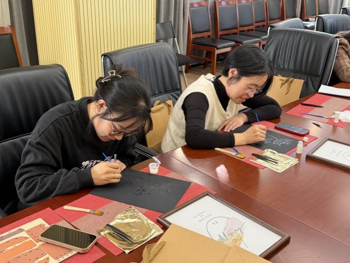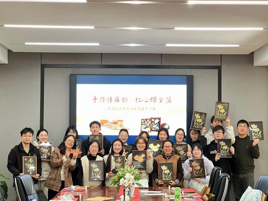 为进一步做好新时代高校廉洁文化建设,人妻 将红色主题教育与非物质文化遗产传承深度融合,于11月26日下午举行“手作传廉韵·红心耀金箔”——非遗技艺里的清廉党建手工课。二十余名师生党员围坐一堂,以金箔画勾勒“竹影莲香”的清廉风骨,用3D红船拼接“初心如磐”的红色信仰,在非遗技艺中厚植廉洁底色,淬炼党性初心。