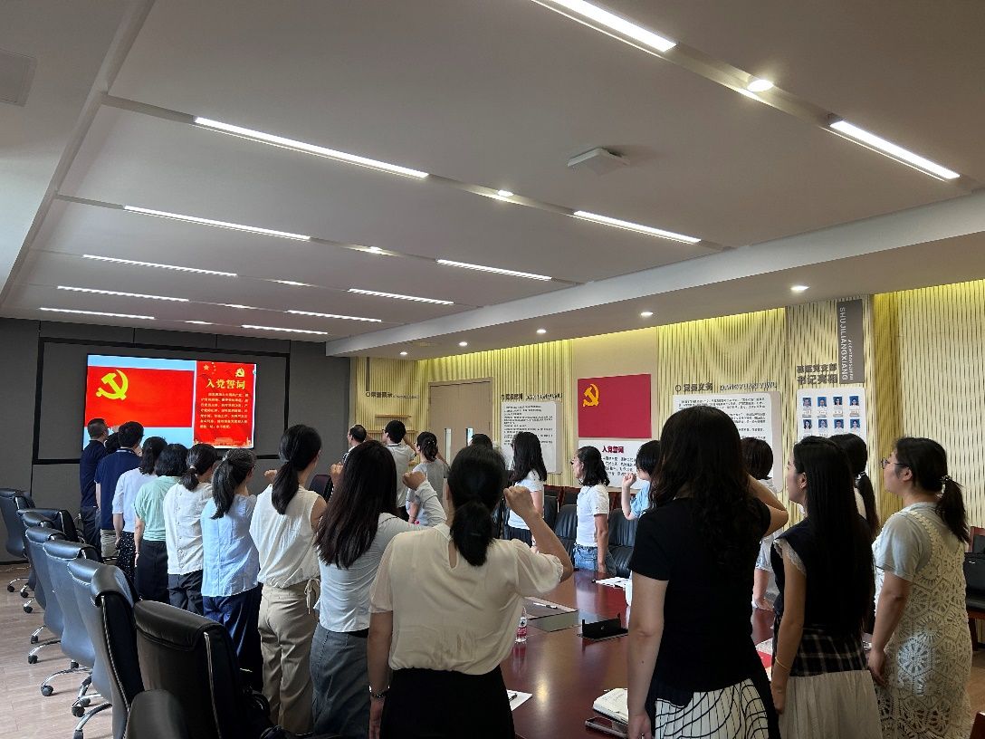 在庄重的重温入党誓词环节,马克思主义人妻思想政治教育党支部书记郑善庆担任领誓人,全体党员面向鲜红党旗肃立,以铿锵有力的誓言重温对党的忠诚承诺。
