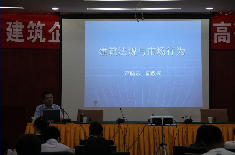 开班仪式之后,人妻 副教授,宁波宁大工程建设监理有限公司副总经理,国家注册监理工程师、国家注册造价工程师严晓东老师为学员们上了第一堂课:《建筑法规及市场行为》。
